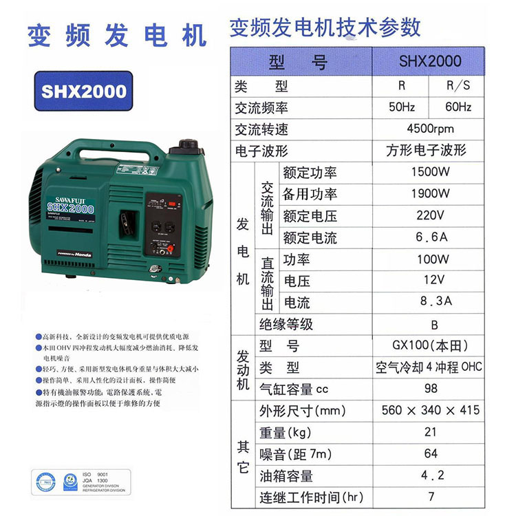 日本泽藤本田汽油发动机SHX2000 1.5KW